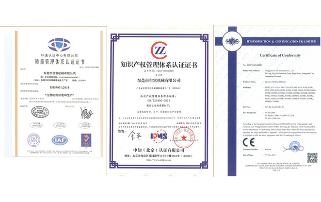 ● 公司成立至今,榮獲了多項證書,其中包括《中國注塑機十大品牌》、《廣東省信得過單位》等一些榮譽,提為國家高新技術企業,及多項專利。